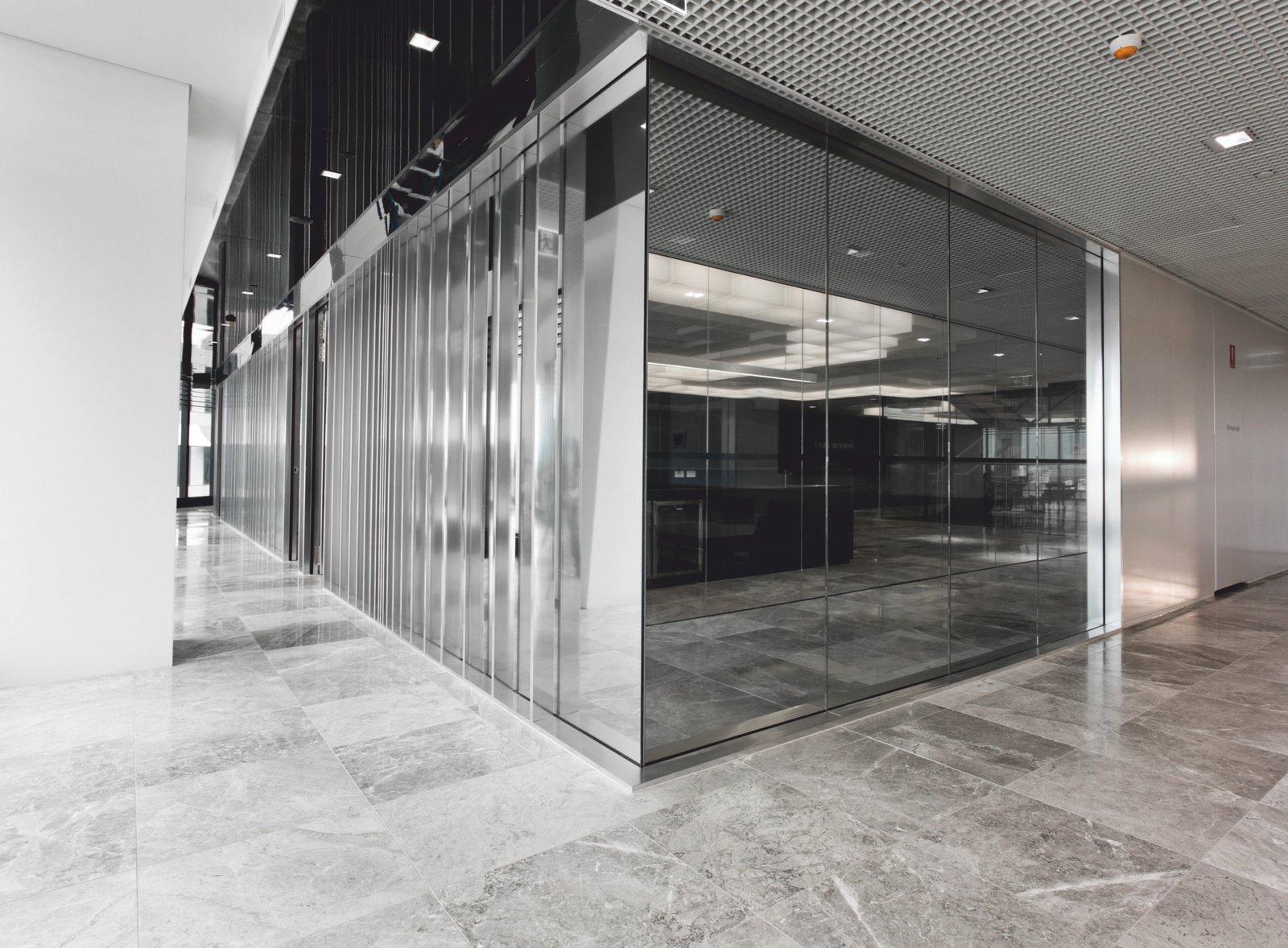 Decorative and functional glass with custom privacy patterns, gradients, or branding.
